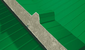 KS1000 FF ist ein trapezprofiliertes Paneelsystem mit Mineralwolldämmkern und durchgeschraubter Befestigung, welches für alle Gebäudearten mit einer Dachneigung von:
